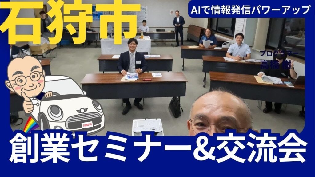 https://youtu.be/oli2BNeogow 石狩商工会議所での創業セミナーの講師を務めました。内容は生成AIについてです「販売促進を飛躍させるAI活用法」。そのあとは参加者が軽食をとりながら、創業者交流会でした。人脈づくりに役立つと参加者の方々は満足されて... -
